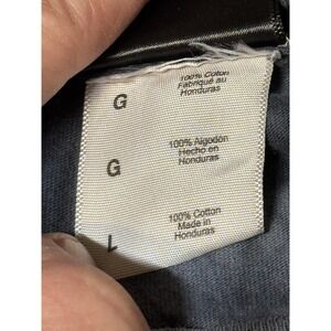 Previously worn with wash wear and heavy cracking in front and back graphics. One tiny front pinhole and several small white paint spots on lower back.