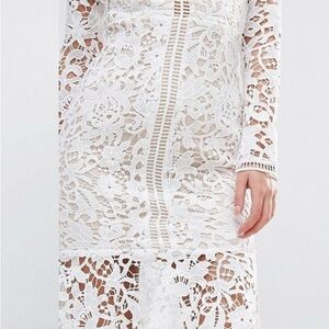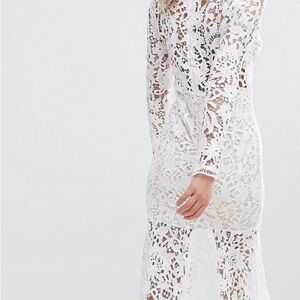 This elegant white lace dress is perfect for any special occasion. Its intricate design adds a touch of sophistication and style.