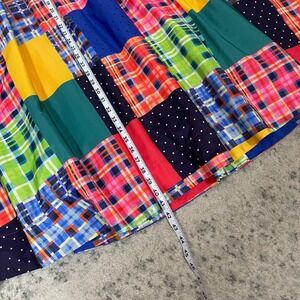 Dive into a world of vibrant color with this eye-catching Maeve A-Line maxi skirt. The playful patchwork design, featuring a delightful mix of plaid and polka dot patterns in a rainbow of hues, creates a truly unique statement piece. The flowing silhouette and ruffled hem offer graceful movement, perfect for twirling through a summer festival or adding a burst of joy to your everyday wardrobe. Imagine yourself strolling through a sun-drenched market or enjoying a picnic in the park with this charming skirt. This skirt is ideal for a casual day out, a music festival, or a relaxed vacation.