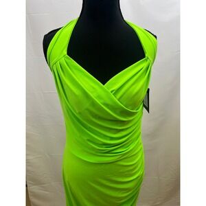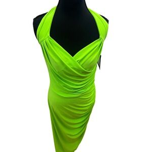 $250 NORMA KAMALI Diana Draped Neon Green Halter Dress XL/42 NWT
