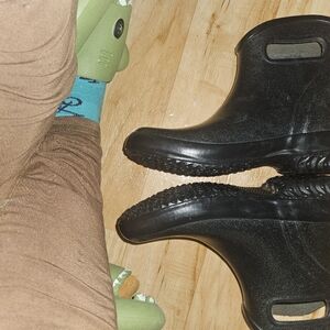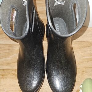 Bogs Women's Ankle Glitter Rain Boots, Black Waterproof Slip-On, Size