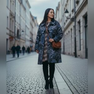 The outer fabric has a glossy finish, giving it a sleek look, while the contrast between the paisley exterior and the checkered interior makes it really unique and eye-catching.