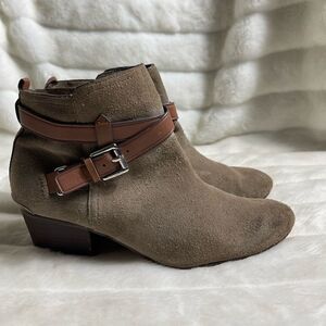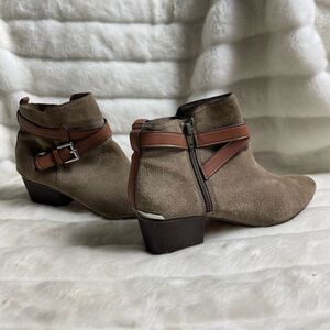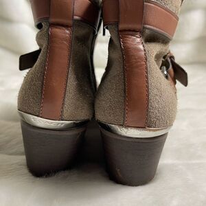 Coach Pauline leather suede khaki & Tan straps ankle boots side zipper s…
