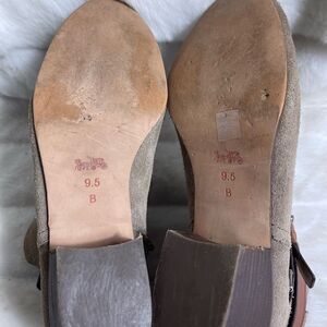 Coach Pauline leather suede khaki & Tan straps ankle boots side zipper silver tone accents size 9.5 pre owned in good used condition signs of wear on the suede and the inside lining has some peelings see all pictures any questions please message.E8