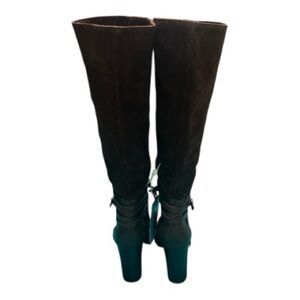 Chic chocolate suede boots with a stylish heel. Perfect for elevating any outfit.