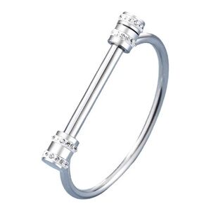 18K White Gold (Rhodium) Unisex Shackle With Diamond Accent Cuff Bangle Bracelet