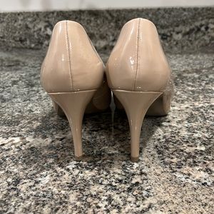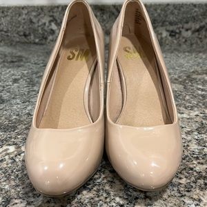 Step out in style in these nude heels. SM brand faux patent leather heels. Worn a few times-only one scuff mark on left shoe. Size 8 in nude color. 2 1/2 inch heels
