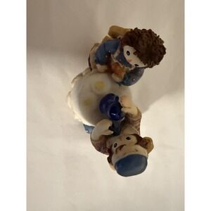This product is a vintage Enesco figurine from the Raggedy Ann and Andy collection, specifically the "Tea for Two with Me and You" limited edition. It features the beloved characters Raggedy Ann and Andy sitting together for a cup of tea, making it a charming addition to any collector's display. The figurine captures a sweet moment from the classic children's stories, bringing a nostalgic touch to any home decor.