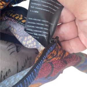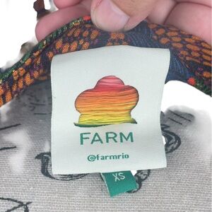 This is a beautiful, 100% viscose Dotted Macaw dress from Farm Rio. It is long sleeve with an elastic cuff sleeve. Side zipper closure and elastic shoulders. Size XS. This dress measures: 51 inches long, 15.5 inches pit to pit. Dress has no stretch.