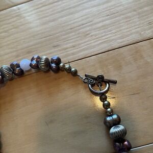 Raw Rose Quartz Necklace Pendant Pink Chunky Pearl Stones Gems Deco Vintage