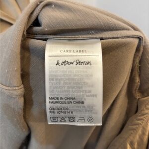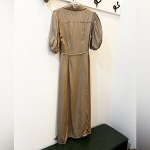 Beautiful khaki midi shirt dress with puff sleeves from & Other Stories. Classic work or casual dress that will fit in any wardrobe. Comes with a small tie belt.