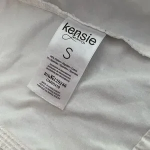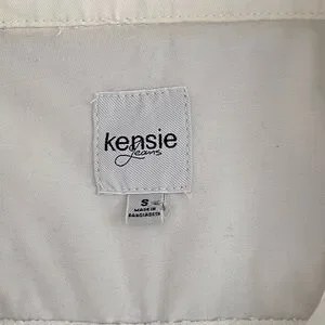 The Kensie White Zip-Up Utility Jacket in women's size small is a versatile and stylish outerwear piece perfect for a variety of occasions. Made of cotton spandex material, this mid-length jacket features a zip, button, and snap closure, as well as military-inspired accents. With a regular fit and lightweight design, this jacket is suitable for all seasons and can be machine washed for easy care. The white color and solid pattern make it a classic and timeless addition to any wardrobe.
