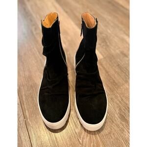 JSlides Womens Nila Sneaker Boot Size 10M Black Suede Zip High Top Shoe Platform