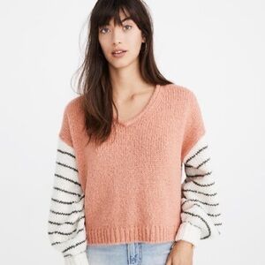 Madewell Wool Alpaca Blend Balloon Sleeve Colorblock Pullover Sweater