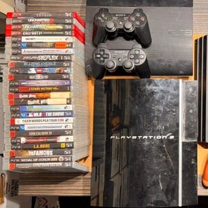 PS3 Super Slim + Fat Console Bundle TESTED 27 Games 3 Controllers Huge Lot