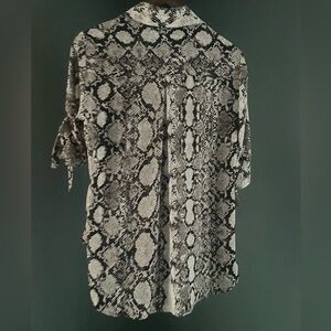 Stylish snake print blouse with a monochrome design. Features a relaxed fit and three-quarter sleeves. Light weight breathable , Ideal for versatile summer styling. Wear alone or layer