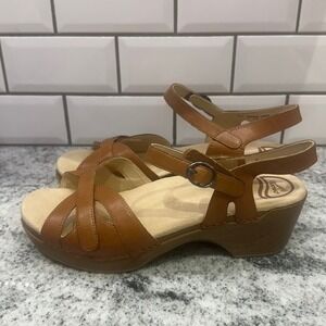 Dansko Women's Tan Leather Criss Cross Wedge Sandals Size 41