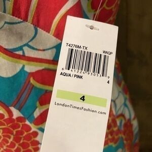 London Times aqua floral sleeveless sundress. Aqua, bright pink, white and chartreuse tropical botanical print. 97% cotton/3% spandex. Brand new with tags. Size 4