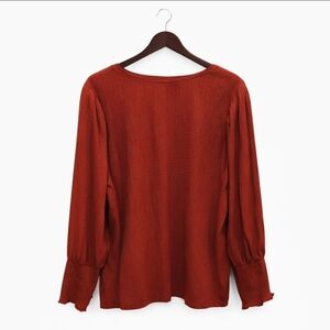 Chicos Rust Vneck Blouse With Long Knit Cuffs Sz 4 (XXL)