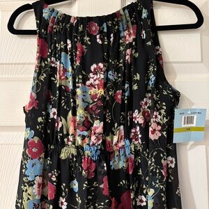 This sleeveless sundress by Suzi Chin for Maggy Boutique features a vibrant pink and red floral pattern on a flowing maxi silhouette. The scoop neckline adds a touch of elegance, making it perfect for casual or resort wear. Crafted with a light and airy fabric, this dress ensures comfort and style for any sunny day.