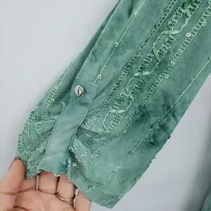 Sami & Jo Green Sequin Embellished Twist Front Blouse Womens Size 1X Plus Top