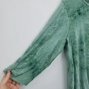 -Soft green tie-dye effect with sequin detailing