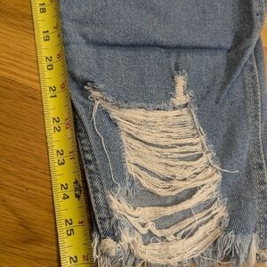 Hollister jeans, size 27 (5R), high-rise, slim straight fit with distressed detailing.