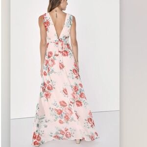 Keywords: Lulus, maxi dress, floral print, plunge neck, slit, blush pink, evening gown, formal dress, special occasion, summer dress, prom dress, wedding guest dress, chic, elegant