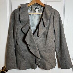 J.Crew Classic Gray Wool Ruffle Front Blazer Raw Edge Peplum Jacket Size 2