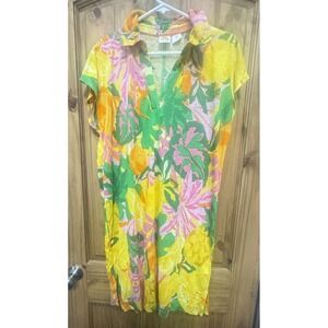 C&C California Linen Blend Dress Tropical Print Sleeveless Size Large L