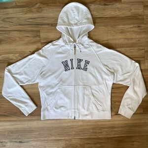 Nike White Embroidered Spell Out Logo Full Zip Up Hoodie Silver Tag Sweatshirt