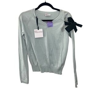 NWT RED VALENTINO Light Blue V Neck Bow Sleeve Detail Cotton Sweater Size XS