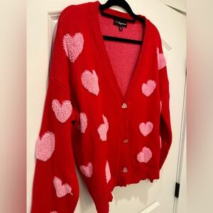 NWOT VALENTINES DAY RED & PINK KNIT CARDIGAN FEAT GLITTER HEART BUTTON DETAILS