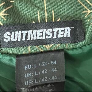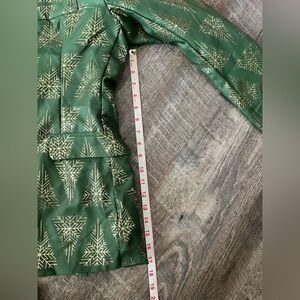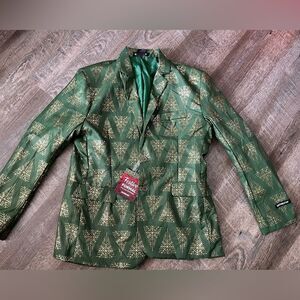 This listing is for a NWT's Suitmeister Holiday Snowflake Tree Blazer in size large. The blazer is green with gold snowflake trees throughout, please see the photos for measurements.
