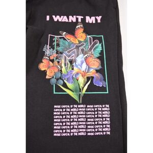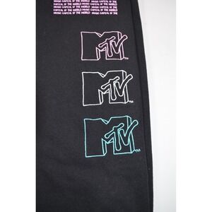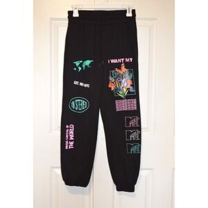 Women's MTV graphic logo sweatpants, size XXS, black with embroidered and screen print. Very good condition