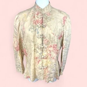 Lauren Ralph Lauren SZ Large VTGE 2000 Rare Linen beige floral knotted blazer
