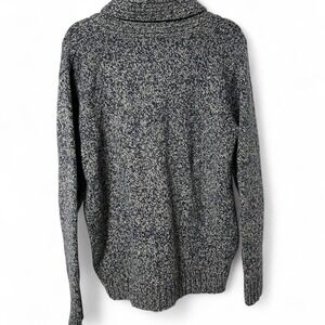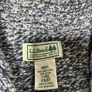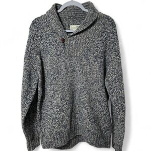 LL Bean Wool Sweater Mens Large Shawl Collar Marled Blue Knit Lambswool
