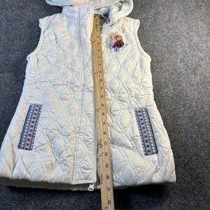 Disney Puffer Vest Girls 7/8 White Frozen Quilted Hooded Jacket Elsa & Anna