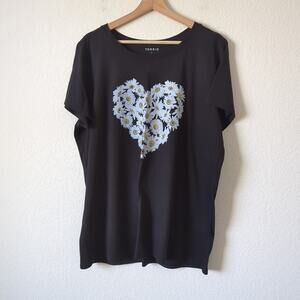 Torrid T-shirt Womens 1 1X Slim Fit Top Daisy Floral Heart Black Short Sleeve