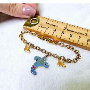 Disney Aladdin Genie Charm Bracelet Enamel Gold Tone Chain Small Wrist Youthful