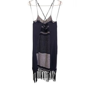 Rebecca Minkoff Navy And Gray Striped Fringe Dress Size 2
