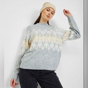 Gap Gray & Yellow Argyle Mock Neck Sweater L