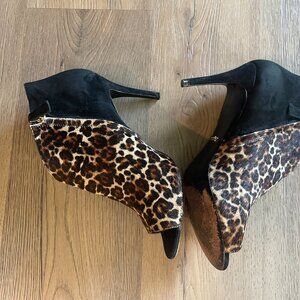 Elaine Turner Leopard Print Cow Hair Peep Toe Bootie Heels Women's 9M