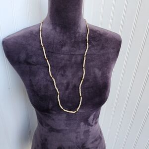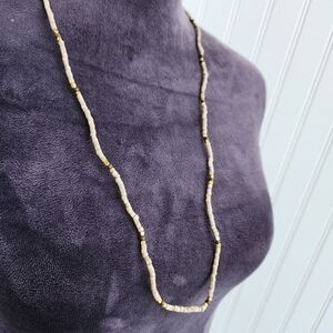 This elegant gold beaded necklace adds a touch of sophistication to any outfit. Perfect for any occasion.