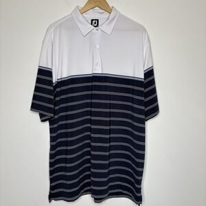 FootJoy Polo Shirt Mens 2XL White Blue Striped Collar Golf Performance Stretch