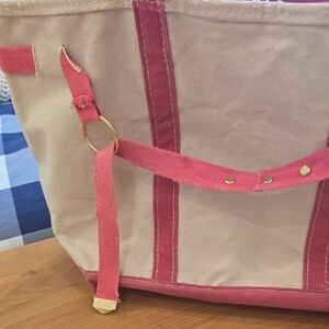 L.L. Bean Pink and Cream Tote Bag, Customized, Distressed, XL, GUC, Zipper