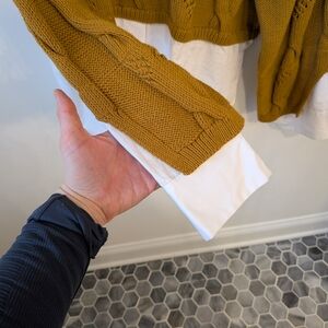 Anthropologie Pilcro Women's Cable Knit Twofer Layer Sweater XL Mustard Yellow