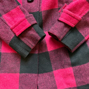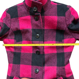 Keywords: Jacob wool coat XS, buffalo plaid jacket, red and black check coat, wool blend winter coat, Canadian fashion outerwear, vintage inspired plaid coat, tailored women’s coat