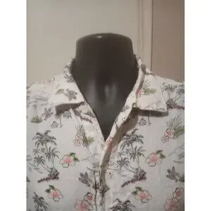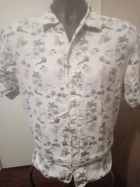 Tommy Bahama Mens Medium M Linen Cotton Short Sleeve Button Up Hawaiian Shirt