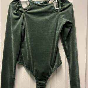 GOOD LUCK GEM Dark Green Velvet Long Sleeve W/Shoulder Cutout Bodysuit Size XS